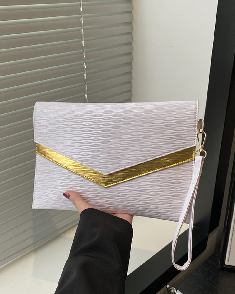 Sac à main en cuir PU colorblock, sac enveloppe tendance avec dragonne
