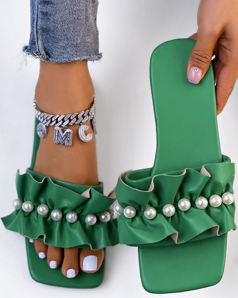 Perlur Decor Ruffles Strandinniskór Sumarsandalar